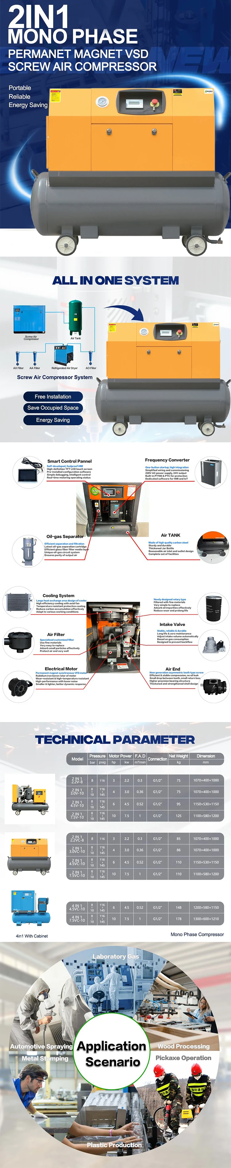 Portable screw air compressor, compact and mobile, suitable for construction, mining and outdoor works. Factory direct supply, fast delivery.