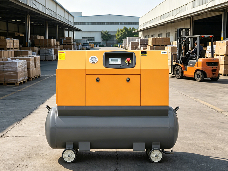 Portable screw air compressor, compact and mobile, suitable for construction, mining and outdoor works. Factory direct supply, fast delivery.