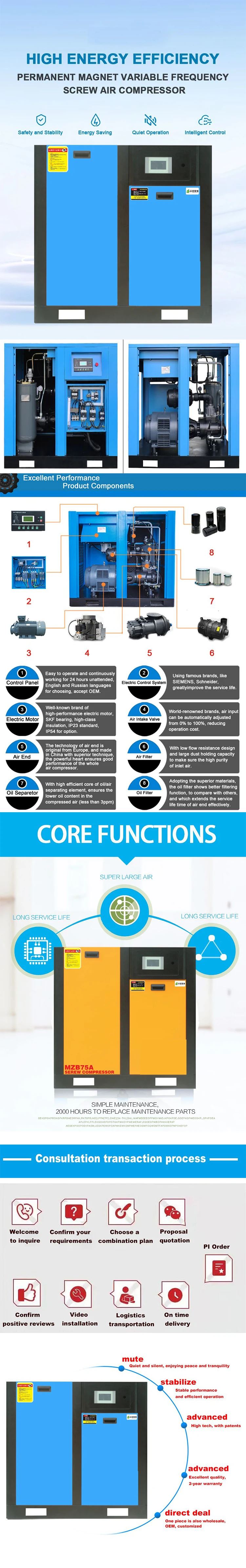 Permanent magnet variable frequency screw air compressor, energy-saving, high-efficiency, stable air supply. Factory direct supply, fast delivery, OEM available.